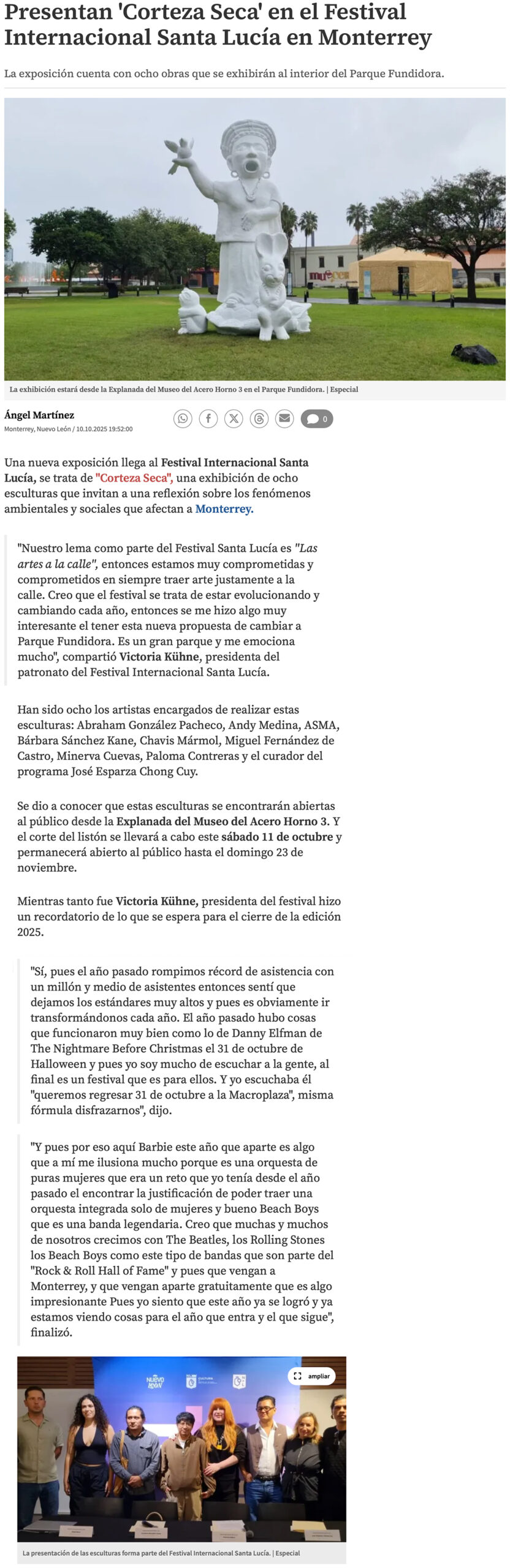 Presentan «Corteza Seca» en el Festival Internacional Santa Lucía en Monterrey